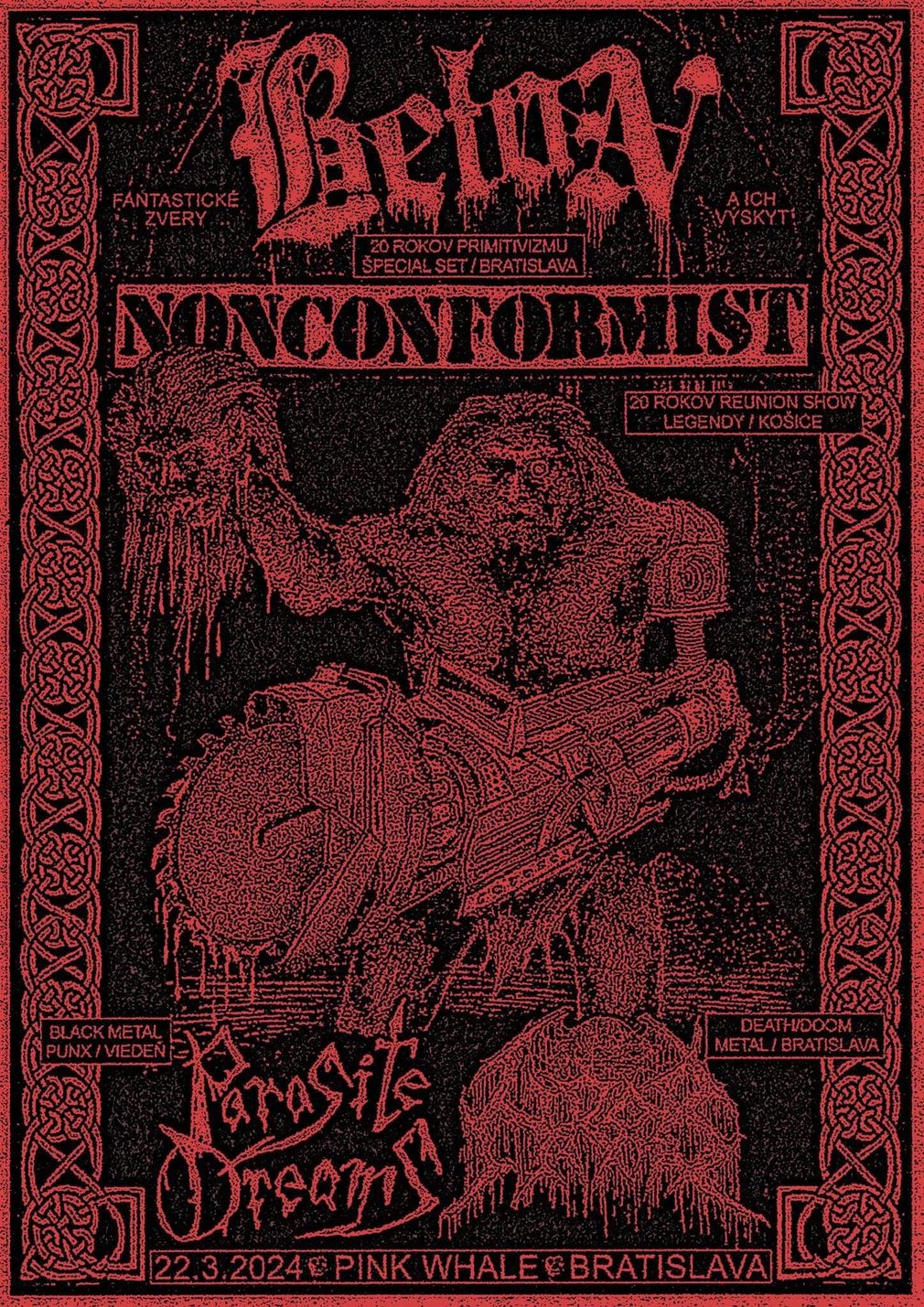 piatok 22.3. Bratislava @ Pink whale + BETON (20 rokov, SK), PARASITE DREAMS (SK), HROB (SK) - plagát