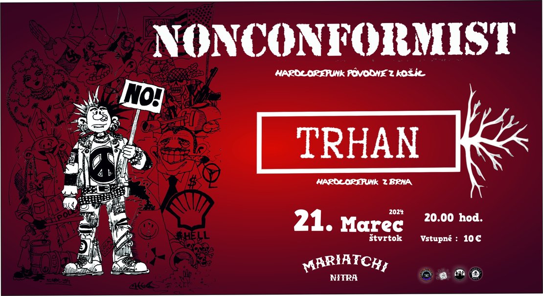 Košická anarchopunková legenda NONCONFORMIST po dvadsaťročnej pauze vyráža na jednorázové spomienkové turné. Kapela behom jedného marcového týždňa odohrá sedem koncertov na Slovensku a v Čechách.