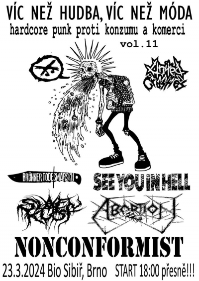 sobota 23.3. Brno @ Sibiř + SLAVENKUST (Poľsko), ABORTION (SK), BRÜNNER TODESMARSCH (CZ), SEE YOU IN HELL (CZ) - plagát